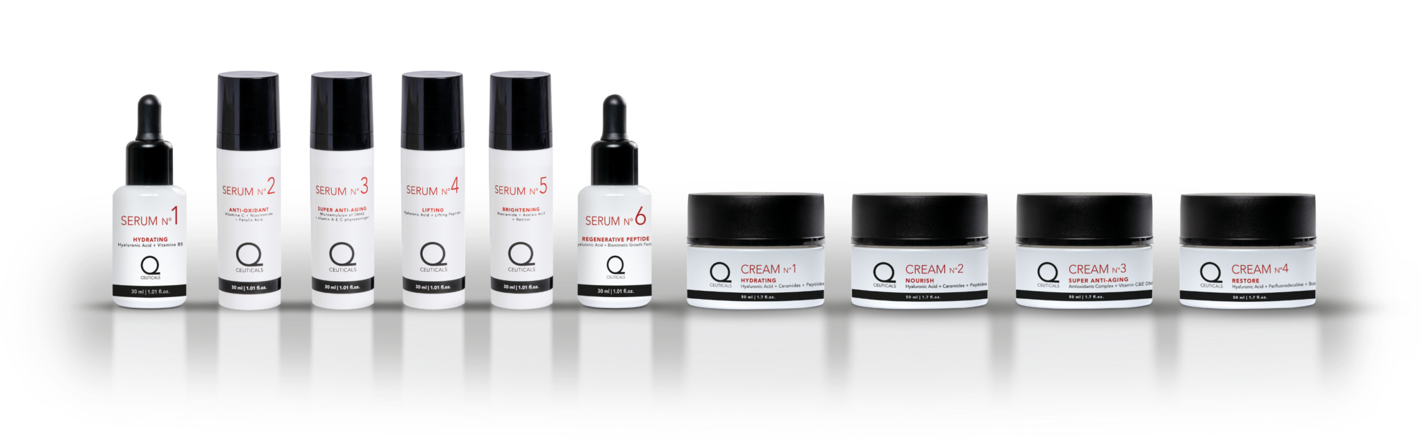 Qceuticals Creams are formulated with key ingredients in high concentration to hydrate, nourish, rejuvenate and regenerate.